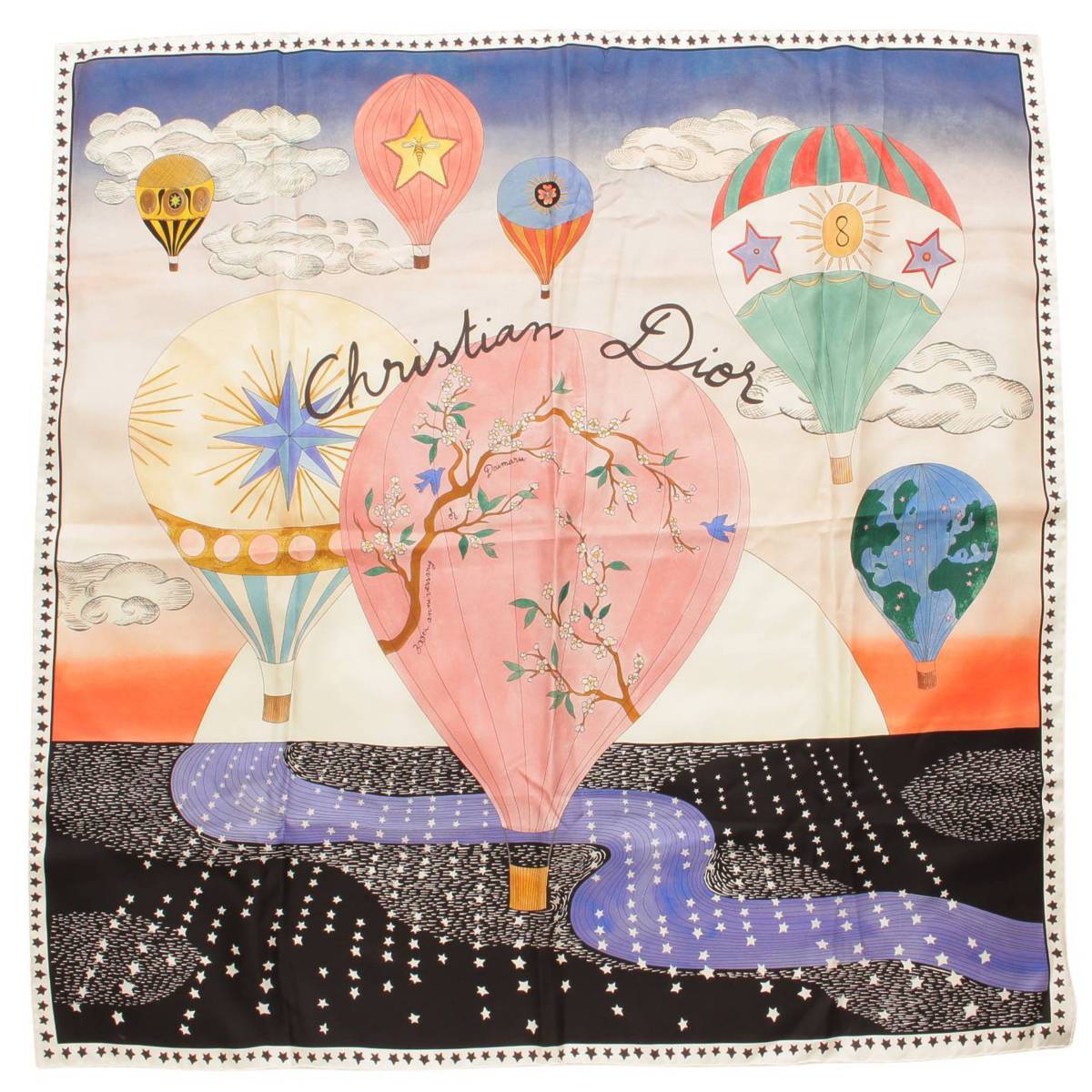 クリスチャン・ディオール スカーフ WW ミッツァ シルク 66MDD106I606 Christian Dior ストール マルチカラー 白【安心保証】【中古】